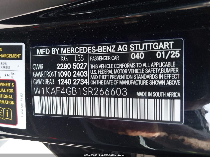 2025 MERCEDES-BENZ C-CLASS | W1KAF4GB1SR266603