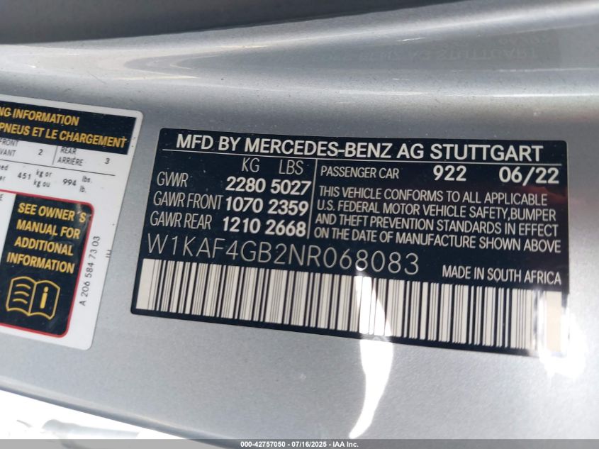 2022 MERCEDES-BENZ C-CLASS | W1KAF4GB2NR068083