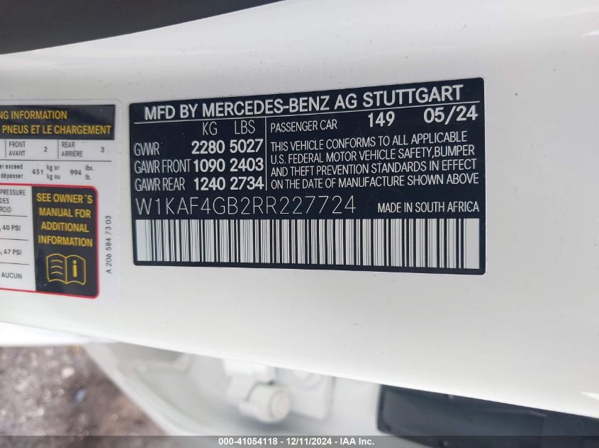 2024 MERCEDES-BENZ C-CLASS | W1KAF4GB2RR227724
