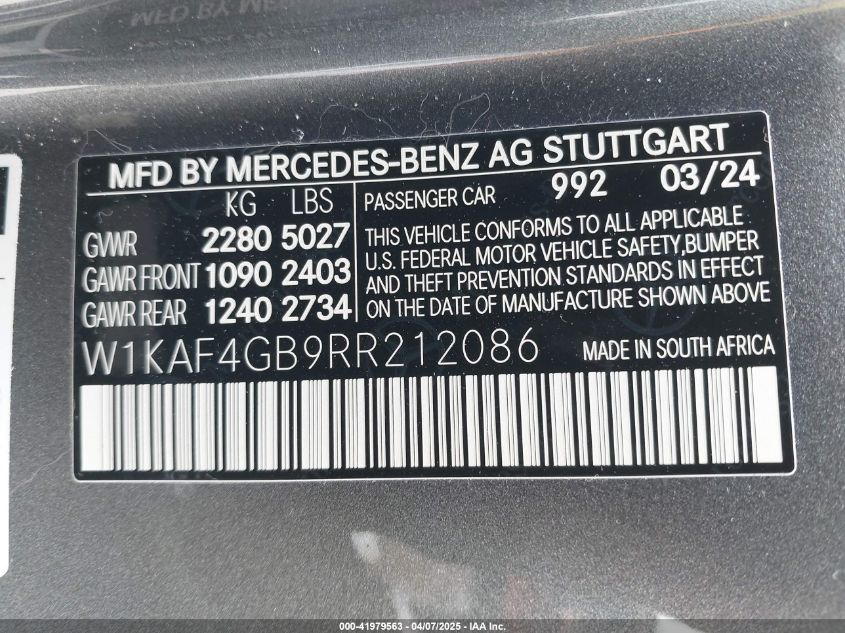 2024 MERCEDES-BENZ C-CLASS | W1KAF4GB9RR212086