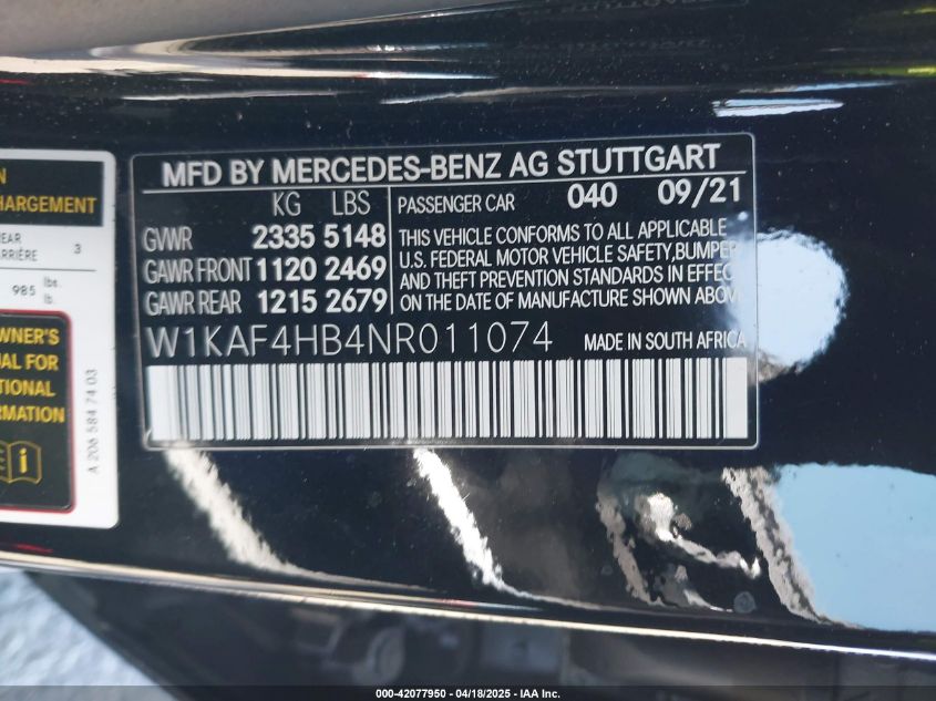 2022 MERCEDES-BENZ C-CLASS | W1KAF4HB4NR011074