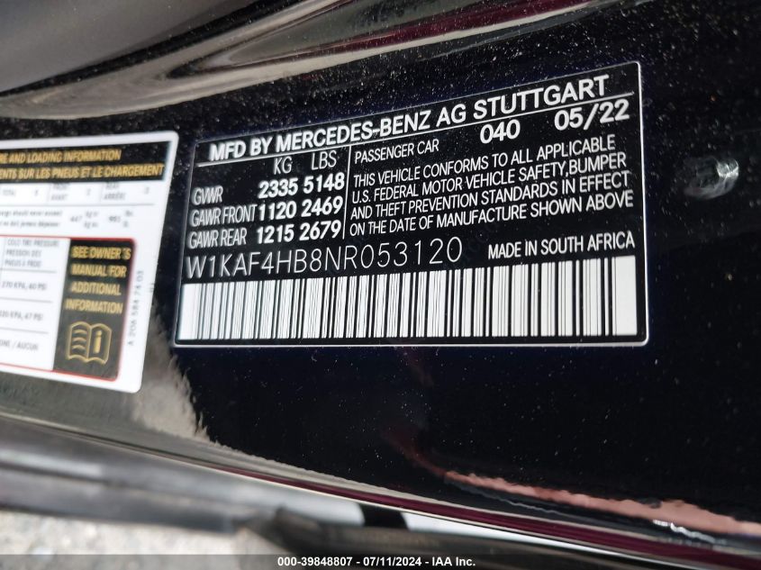 2022 MERCEDES-BENZ C-CLASS | W1KAF4HB8NR053120