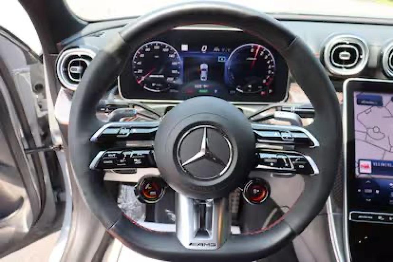 Inside, the C-Class blends minimalist luxury with high-tech presentation. Standard interiors feature MB-Tex synthetic leather with open-pore wood or aluminum trims, while AMG Line packages introduce sport seats, Nappa leather upholstery options, and AMG-specific steering wheels with perforated grips and drive mode selectors. The dashboard is dominated by a sweeping 11.9-inch portrait-oriented touchscreen running MBUX (Mercedes-Benz User Experience) with voice control, alongside a 12.3-inch fully digital instrument cluster. Ambient lighting with 64 colors, Burmester 3D Surround Sound options, and premium trim materials elevate the interior to rival many larger, more expensive sedans.