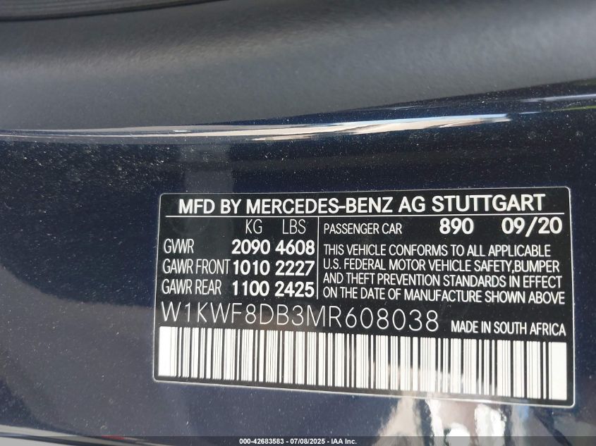 2021 MERCEDES-BENZ C-CLASS | W1KWF8DB3MR608038