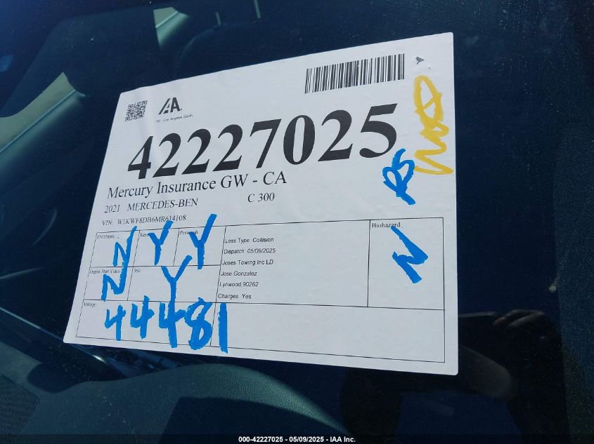 2021 MERCEDES-BENZ C-CLASS | W1KWF8DB6MR614108