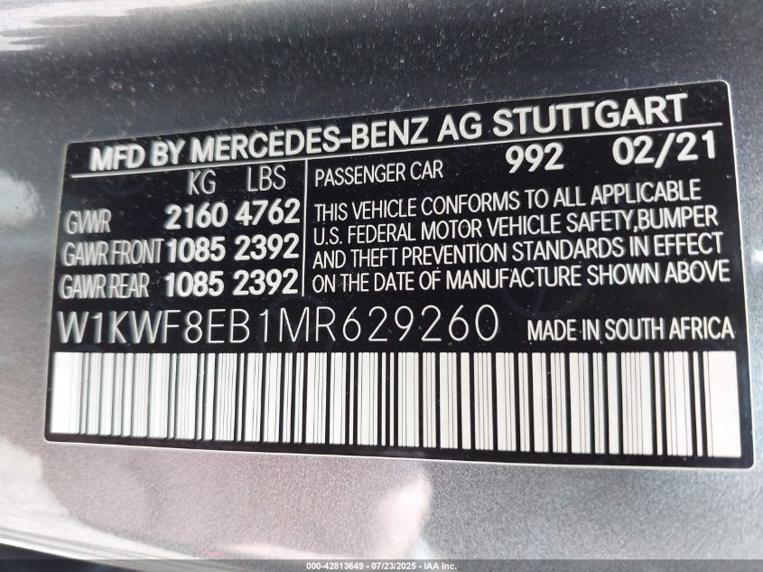 2021 MERCEDES-BENZ C-CLASS | W1KWF8EB1MR629260