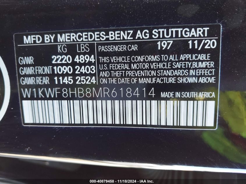 2021 MERCEDES-BENZ C-CLASS | W1KWF8HB8MR618414