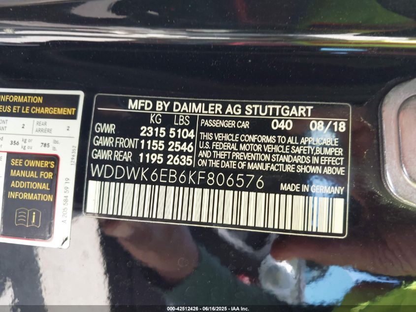 2019 MERCEDES-BENZ C-CLASS | WDDWK6EB6KF806576