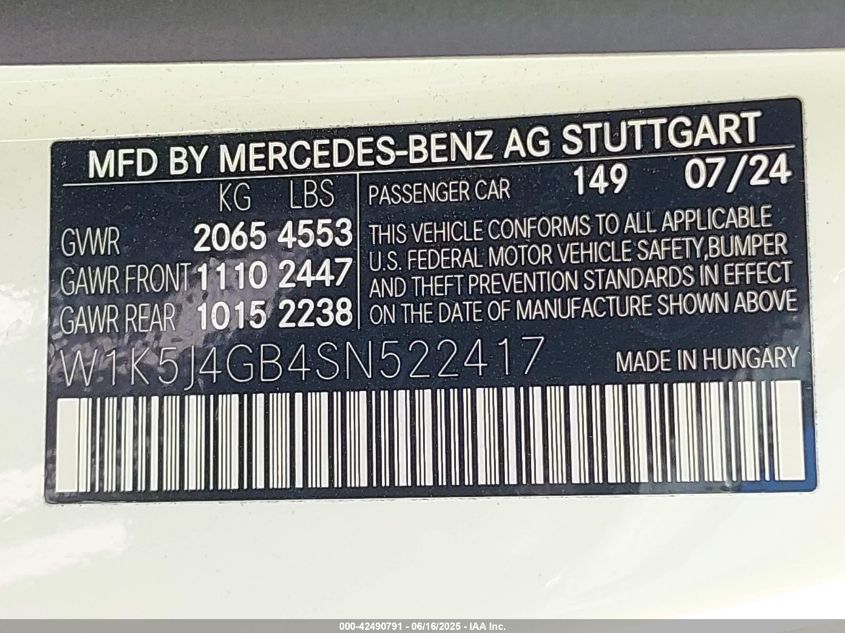 2025 MERCEDES-BENZ CLA-CLASS | W1K5J4GB4SN522417