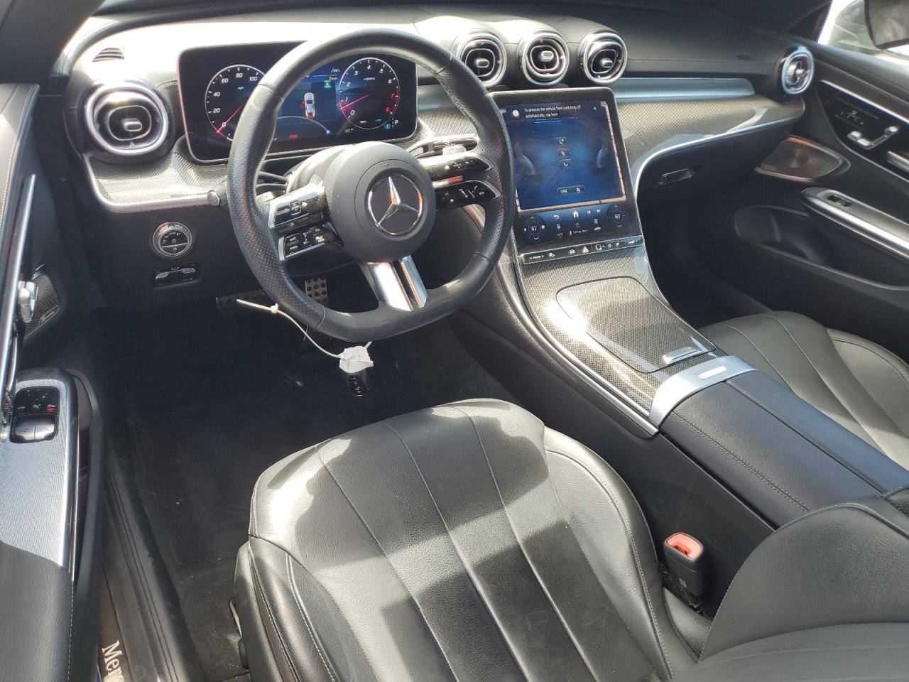 Inside, base CLE models feature MB-Tex synthetic leather, while higher trims and AMG variants receive genuine Nappa leather with AMG-specific seat contours, contrasting stitching, and embossed emblems. Available colors include Black, Macchiato Beige, Tonka Brown, and AMG-exclusive Black/Red and Sage Grey/Black two-tone configurations. Dash inserts include open-pore wood, gloss carbon fiber, or Metal Weave aluminum depending on trim, with CLE 53 models gaining AMG-specific ambient lighting profiles and a flat-bottom AMG Performance steering wheel. The MBUX Superscreen unites a 12.3-inch instrument display and 11.9-inch vertical touchscreen, enhanced in CLE 53 by AMG-specific performance pages, lap timers, and real-time telemetry.
