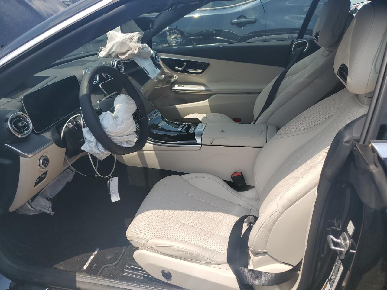 Inside, base CLE models feature MB-Tex synthetic leather, while higher trims and AMG variants receive genuine Nappa leather with AMG-specific seat contours, contrasting stitching, and embossed emblems. Available colors include Black, Macchiato Beige, Tonka Brown, and AMG-exclusive Black/Red and Sage Grey/Black two-tone configurations. Dash inserts include open-pore wood, gloss carbon fiber, or Metal Weave aluminum depending on trim, with CLE 53 models gaining AMG-specific ambient lighting profiles and a flat-bottom AMG Performance steering wheel. The MBUX Superscreen unites a 12.3-inch instrument display and 11.9-inch vertical touchscreen, enhanced in CLE 53 by AMG-specific performance pages, lap timers, and real-time telemetry.