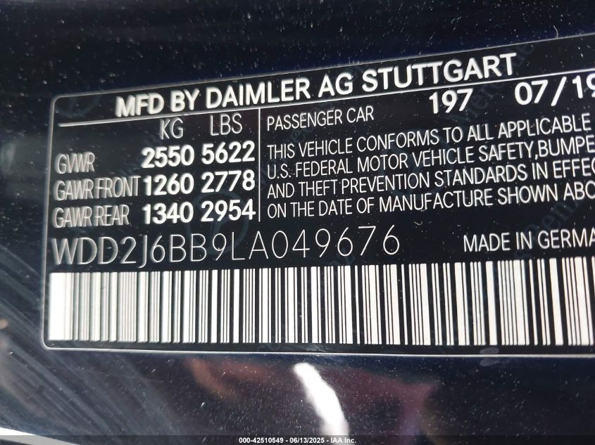 2020 MERCEDES-BENZ CLS-CLASS | WDD2J6BB9LA049676