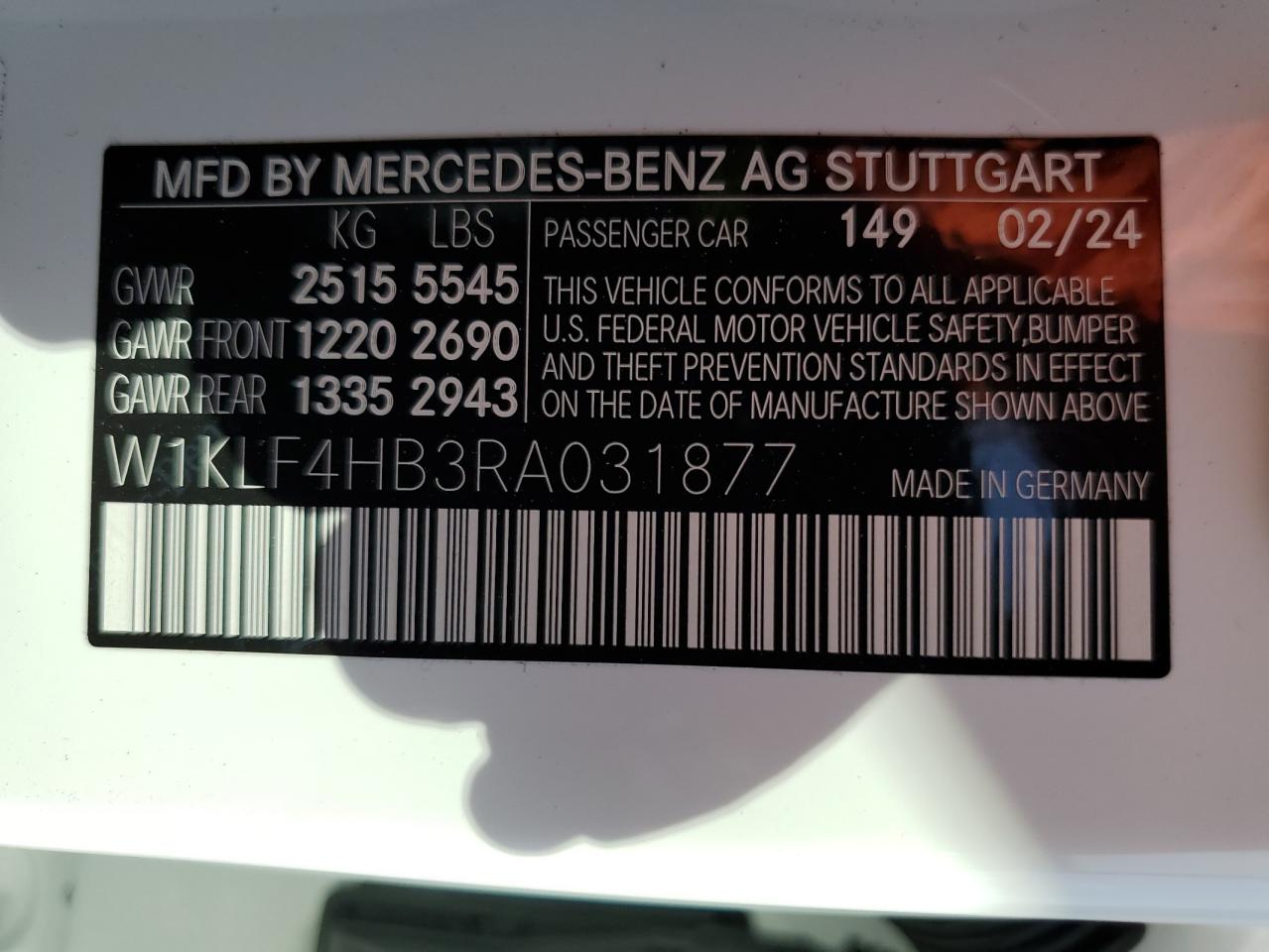 ❯2024 MERCEDES-BENZ E-CLASS | W1KLF4HB3RA031877