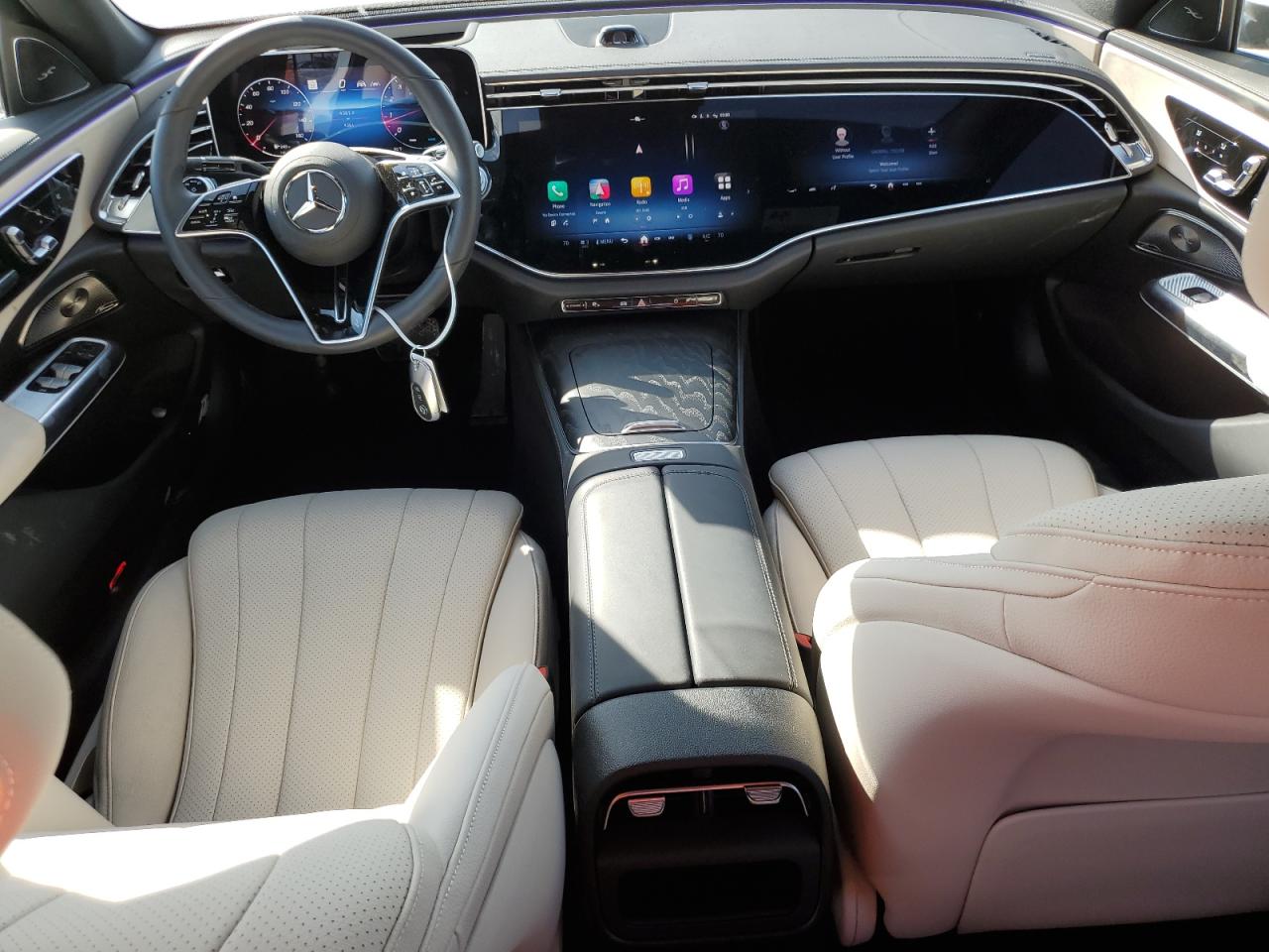 Inside, the cabin offers an array of trim materials and colors, including Black, Macchiato Beige, Tonka Brown, and AMG-specific schemes with red or blue contrast stitching. High-gloss wood, aluminum, and piano black trims add a refined touch, and ambient lighting — now visible through the dashboard — changes dynamically with drive modes.