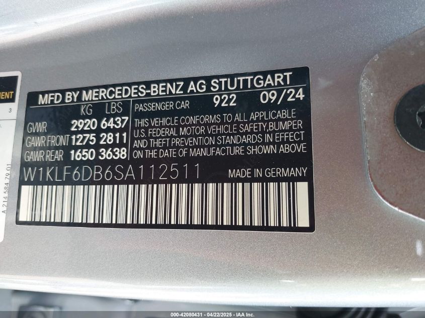 2025 MERCEDES-BENZ E-CLASS | W1KLF6DB6SA112511