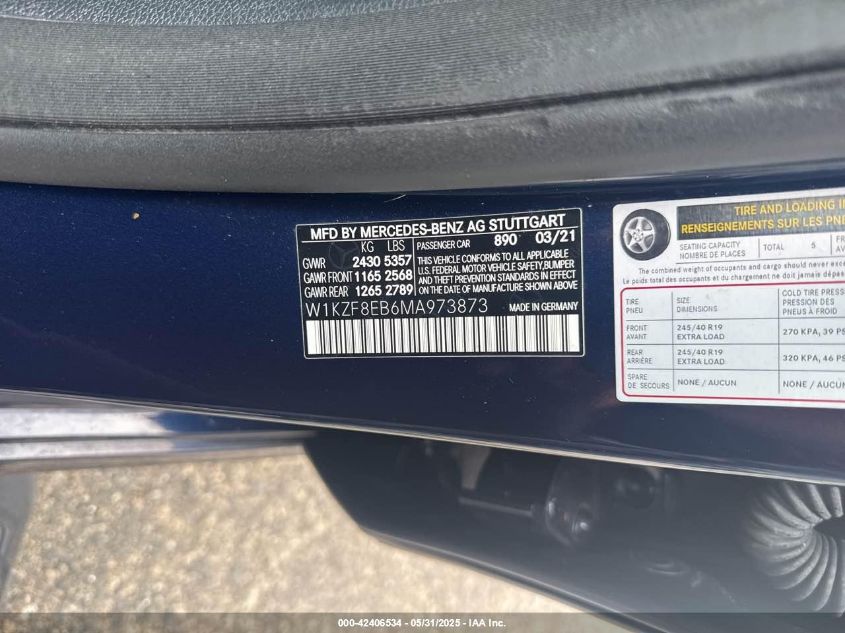 2021 MERCEDES-BENZ E-CLASS | W1KZF8EB6MA973873