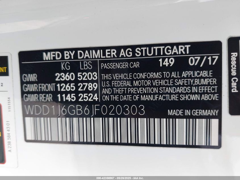 2018 MERCEDES-BENZ E-CLASS | WDD1J6GB6JF020303