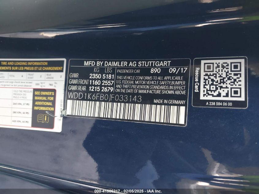 2018 MERCEDES-BENZ E-CLASS | WDD1K6FB0JF033143