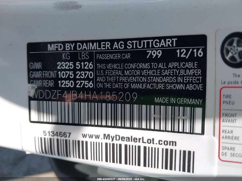 2017 MERCEDES-BENZ E-CLASS | WDDZF4JB4HA185209