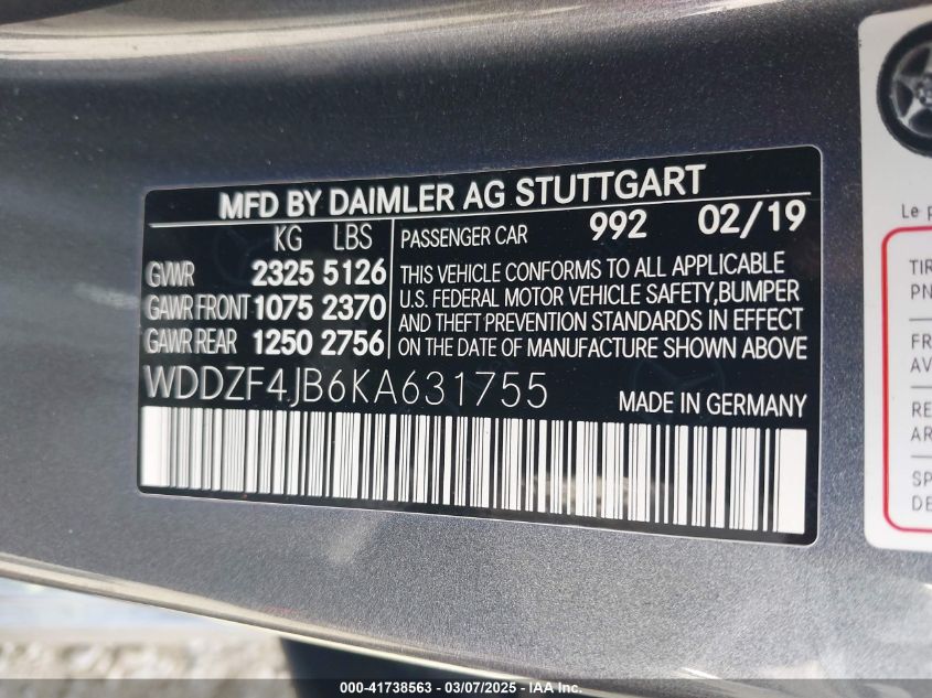 2019 MERCEDES-BENZ E-CLASS | WDDZF4JB6KA631755
