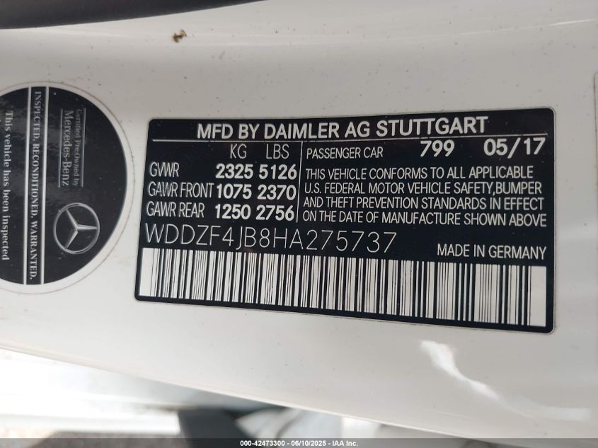 2017 MERCEDES-BENZ E-CLASS | WDDZF4JB8HA275737