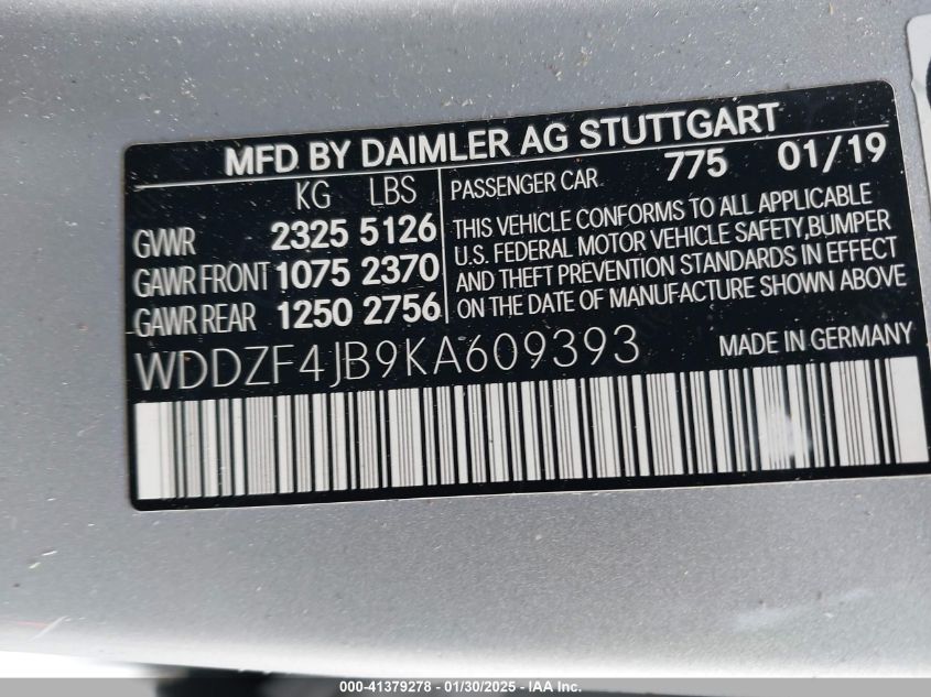 2019 MERCEDES-BENZ E-CLASS | WDDZF4JB9KA609393