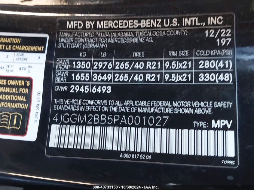 2023 MERCEDES-BENZ EQE-CLASS SUV | 4JGGM2BB5PA001027