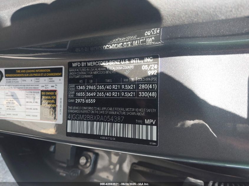 2024 MERCEDES-BENZ EQE-CLASS SUV | 4JGGM2BBXRA054387