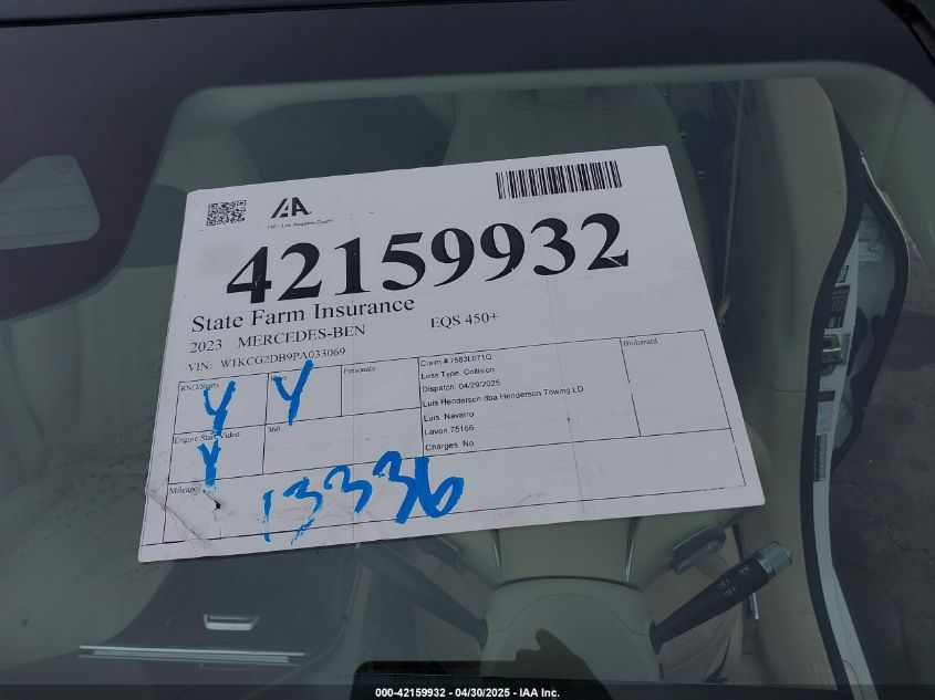 2023 MERCEDES-BENZ EQS-CLASS SEDAN | W1KCG2DB9PA033069