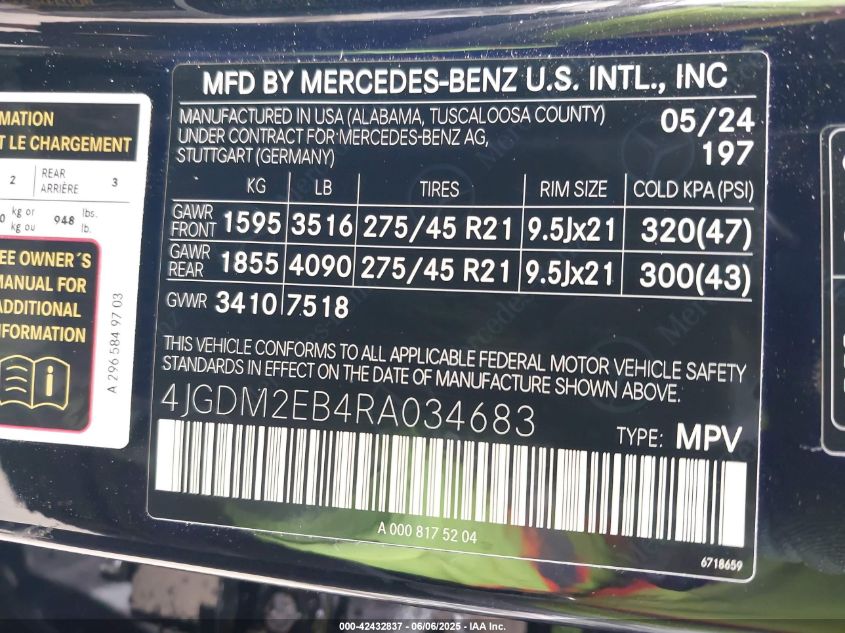 2024 MERCEDES-BENZ EQS-CLASS SUV | 4JGDM2EB4RA034683