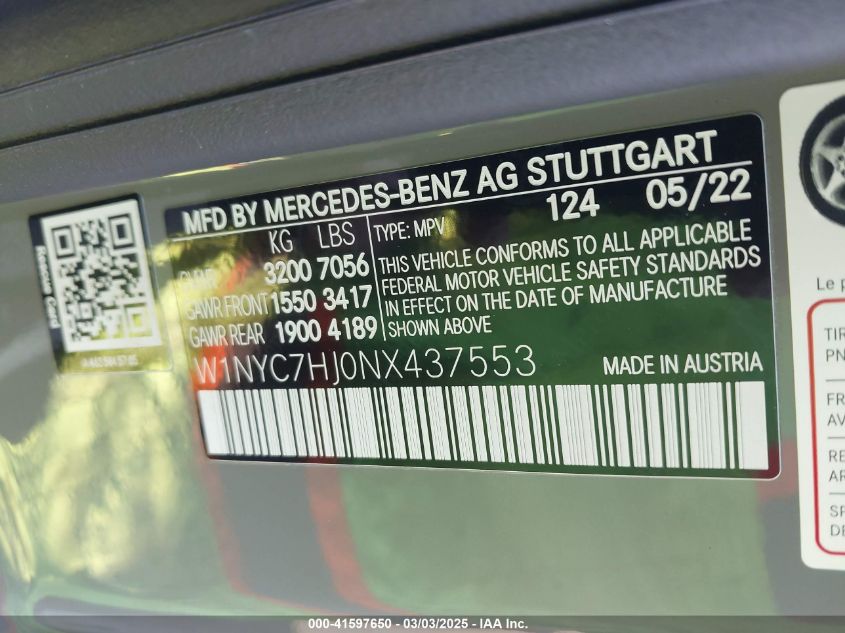2022 MERCEDES-BENZ G-CLASS | W1NYC7HJ0NX437553