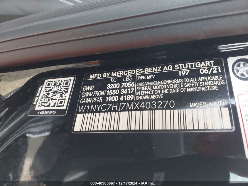 2021 MERCEDES-BENZ G-CLASS | W1NYC7HJ7MX403270
