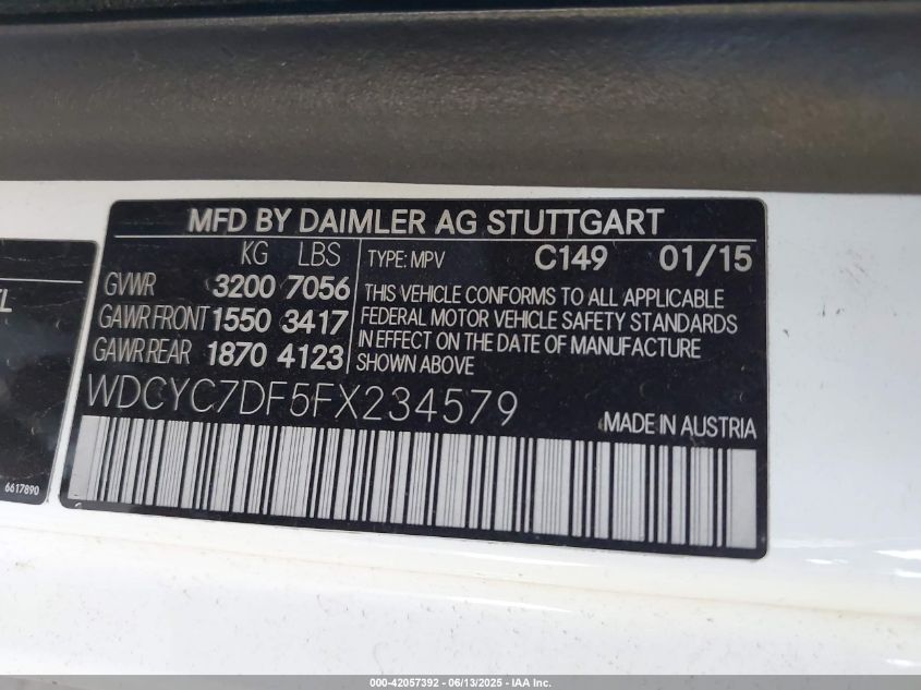 2015 MERCEDES-BENZ G-CLASS | WDCYC7DF5FX234579