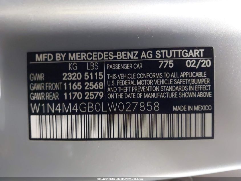 2020 MERCEDES-BENZ GLB-CLASS | W1N4M4GB0LW027858