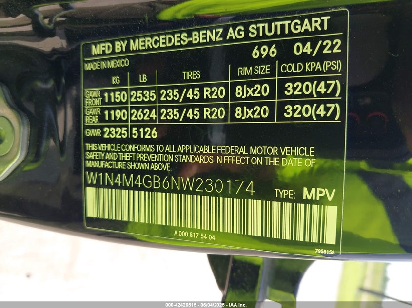 2022 MERCEDES-BENZ GLB-CLASS | W1N4M4GB6NW230174