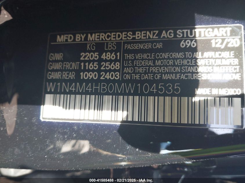 2021 MERCEDES-BENZ GLB-CLASS | W1N4M4HB0MW104535
