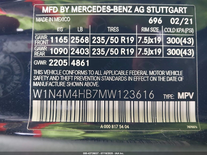 2021 MERCEDES-BENZ GLB-CLASS | W1N4M4HB7MW123616