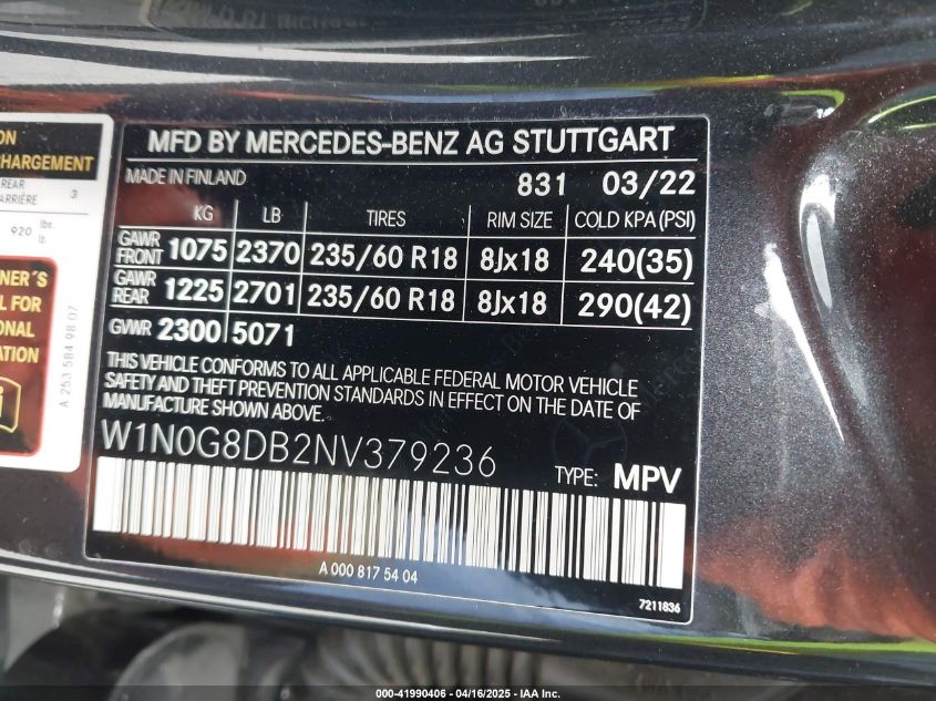 2022 MERCEDES-BENZ GLC-CLASS | W1N0G8DB2NV379236