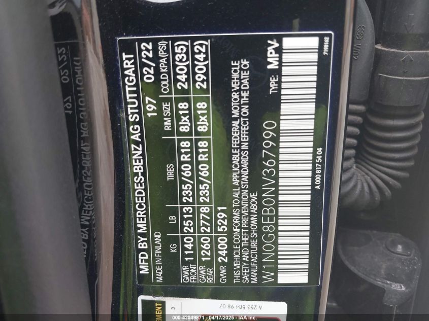 2022 MERCEDES-BENZ GLC-CLASS | W1N0G8EB0NV367990