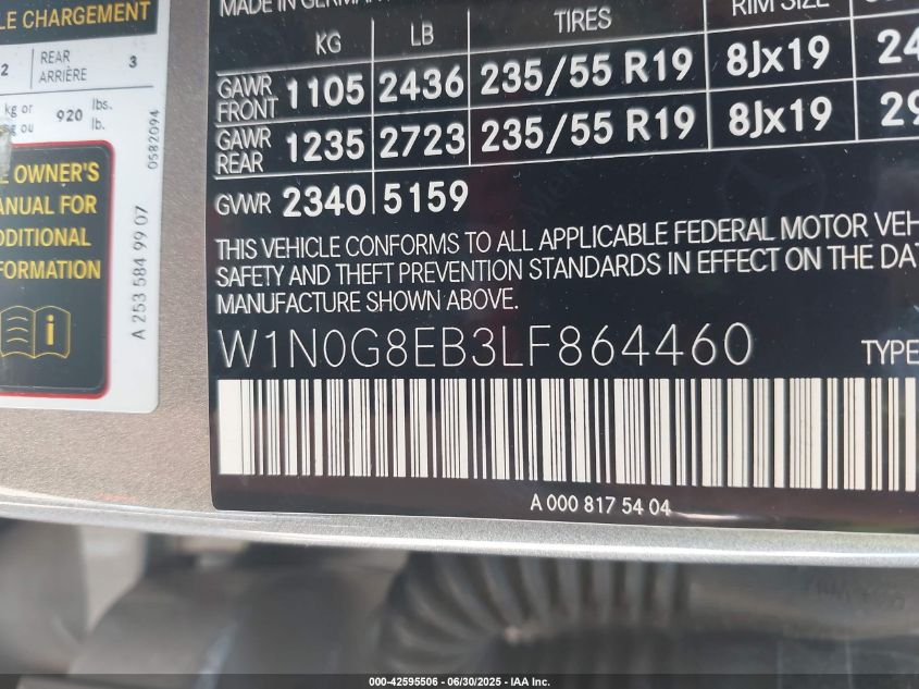 2020 MERCEDES-BENZ GLC-CLASS | W1N0G8EB3LF864460