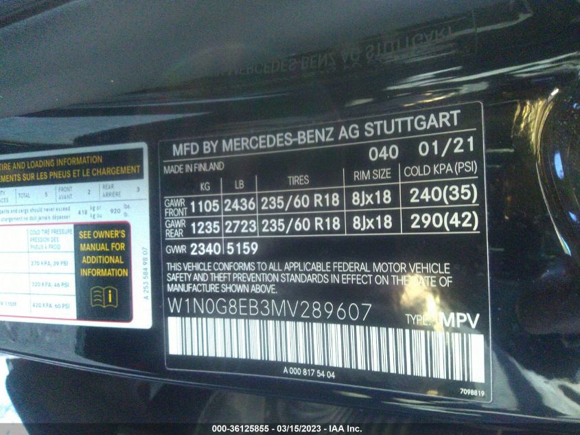 2021 MERCEDES-BENZ GLC-CLASS | W1N0G8EB3MV289607