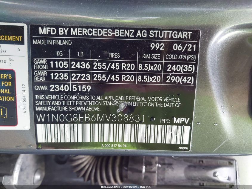 2021 MERCEDES-BENZ GLC-CLASS | W1N0G8EB6MV308831