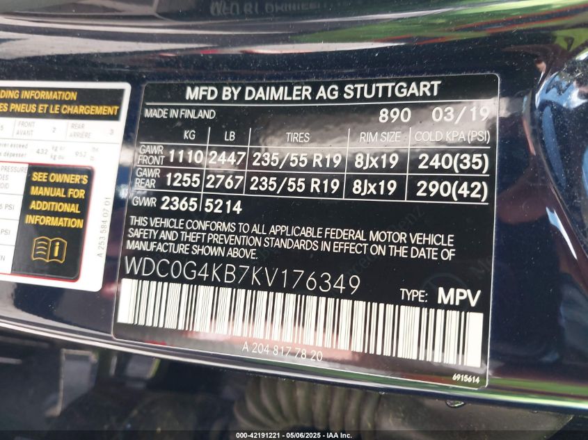 2019 MERCEDES-BENZ GLC-CLASS | WDC0G4KB7KV176349