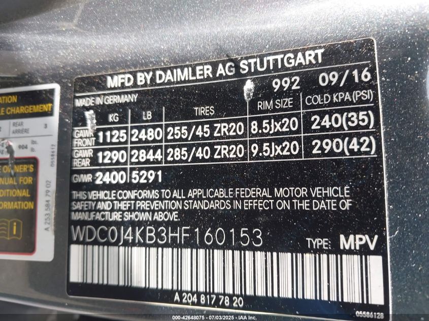 2017 MERCEDES-BENZ GLC-CLASS | WDC0J4KB3HF160153
