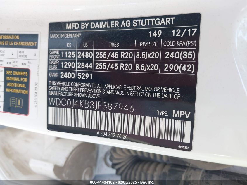 2018 MERCEDES-BENZ GLC-CLASS | WDC0J4KB3JF387946