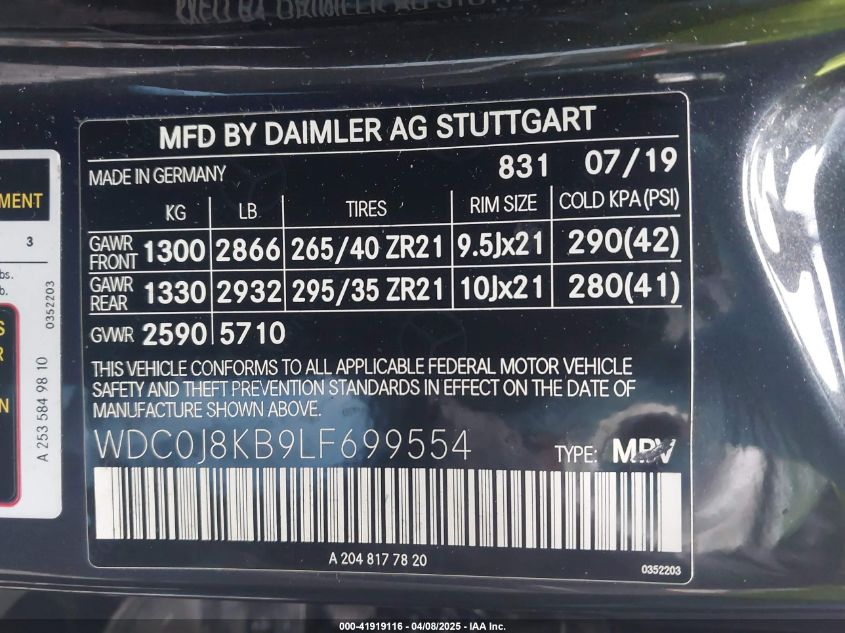 2020 MERCEDES-BENZ GLC-CLASS | WDC0J8KB9LF699554