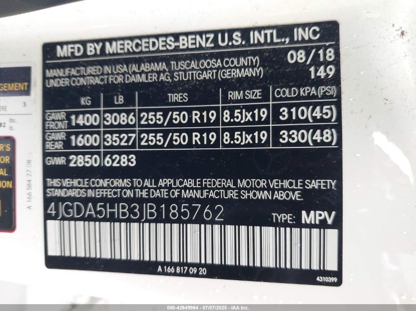 2018 MERCEDES-BENZ GLE-CLASS | 4JGDA5HB3JB185762