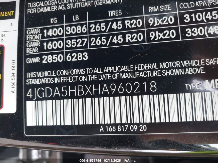 2017 MERCEDES-BENZ GLE-CLASS | 4JGDA5HBXHA960218