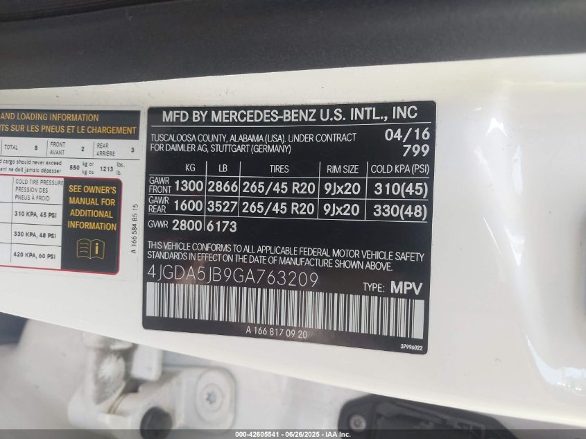 2016 MERCEDES-BENZ GLE-CLASS | 4JGDA5JB9GA763209