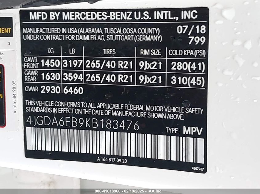 2019 MERCEDES-BENZ GLE-CLASS | 4JGDA6EB9KB183476